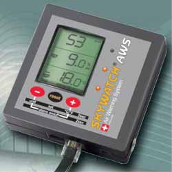 Skywatch AWS ofera 3 functii: masoara, afiseaza si avertizeaza utilizatorul atat vizual cat si sonor de viteza aerului, temperatura si umiditate. Valorile minima si maxima pentru temperatura si umiditate pot fi ajustate individual. Viteza aerului (vantului) poate fi masurata pe doua nivele (inalt si jos). Unitatea de control care opereaza independent de senzori este proiectata pentru aplicatii multiple. Skywatch AWS a fost proiectat cu intentia de a proteja persoanele, animalele, plantele si materialele. Este in special potrivit pentru: Agricultura si horticultura: protectia plantelor, scheme de irigatii, cultivare in sere, depozitare de produse, risc de inghet la recolte etc. Produse agro-alimentare: stocare si procesare de produse si alimente; uscarea produselor (tutun, cereale etc.), pivnite de vinuri. Managementul nivelului de confort in locuri publice: aer conditionat, arhive, muzee, sali de concert etc. Meteorologie: studii de mediu etc. Botanica si zoologie: acvarii, gradini zoologice, rezervatii; Specificatii